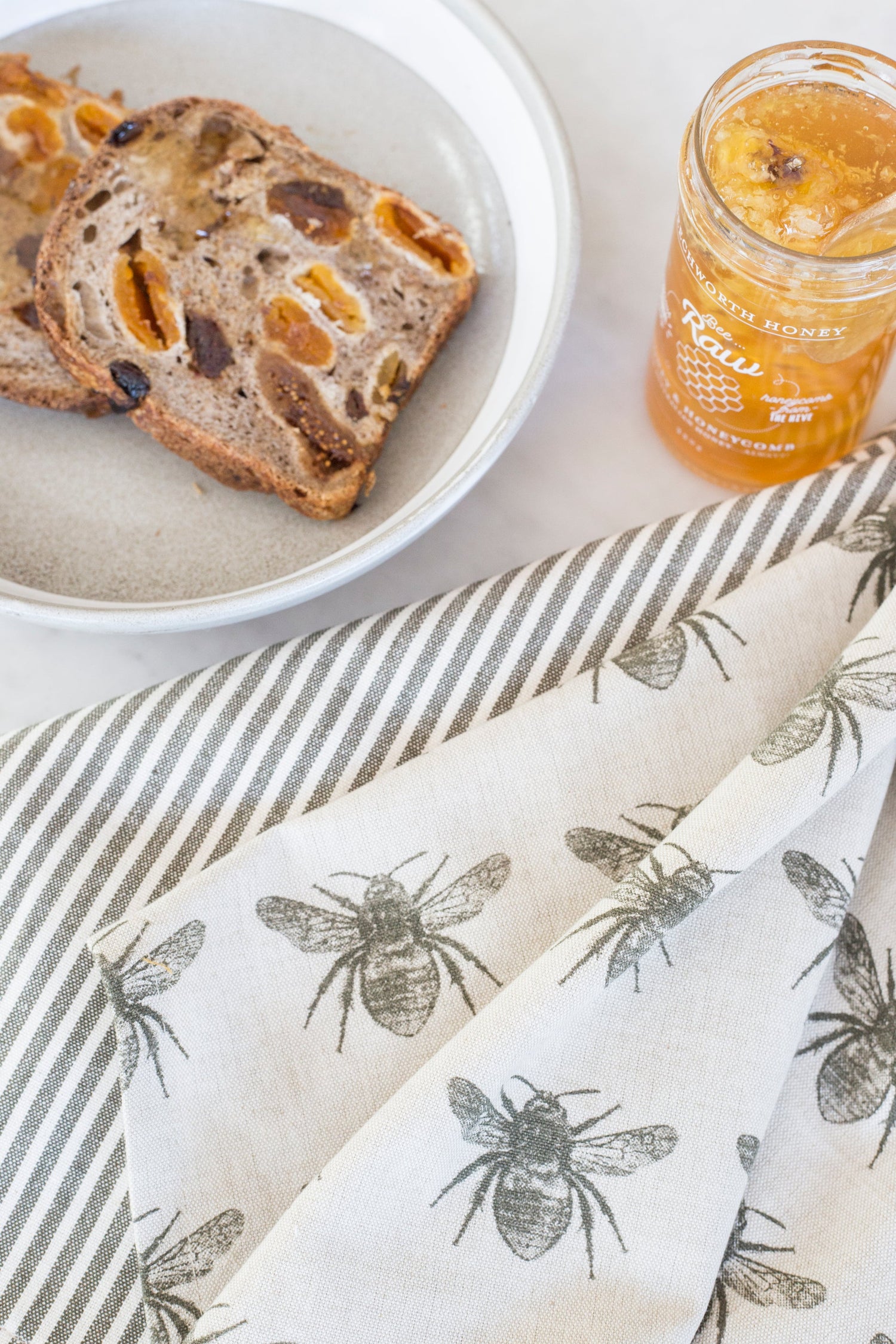 The range blends playful bee motifs with candy stripes to create a cheerful, nature-inspired collection. Made from recycled fabrics and packaged plastic-free, it includes aprons, tea towels, and table linens in warm tones like olive, terracotta, and Prussia blue. Stylish yet sustainable, the range brings a touch of summer charm and eco-conscious living into everyday kitchens and dining spaces.